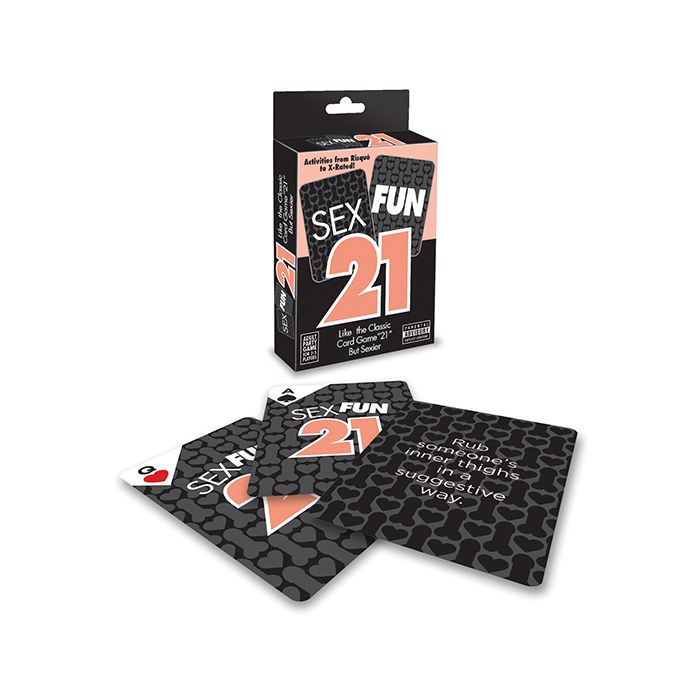The "Sex Fun 21" card game is an exciting adult card game. Gameplay is similar to blackjack. There are 4 extra aces, which increase your chances of getting "blackjack." Each card features a sexy activity to perform throughout the game. You can play Sex Fun 21 with two or more people.