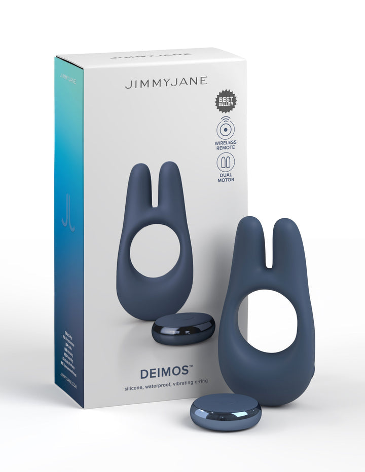 Experience cutting-edge pleasure with the JimmyJane Deimos vibrating silicone cock ring. Featuring dual powerful motors in each flexible ear, it delivers seven vibration patterns and three intensity settings for intense clitoral sensation. Use the remote control to enjoy spontaneous couples’ play.