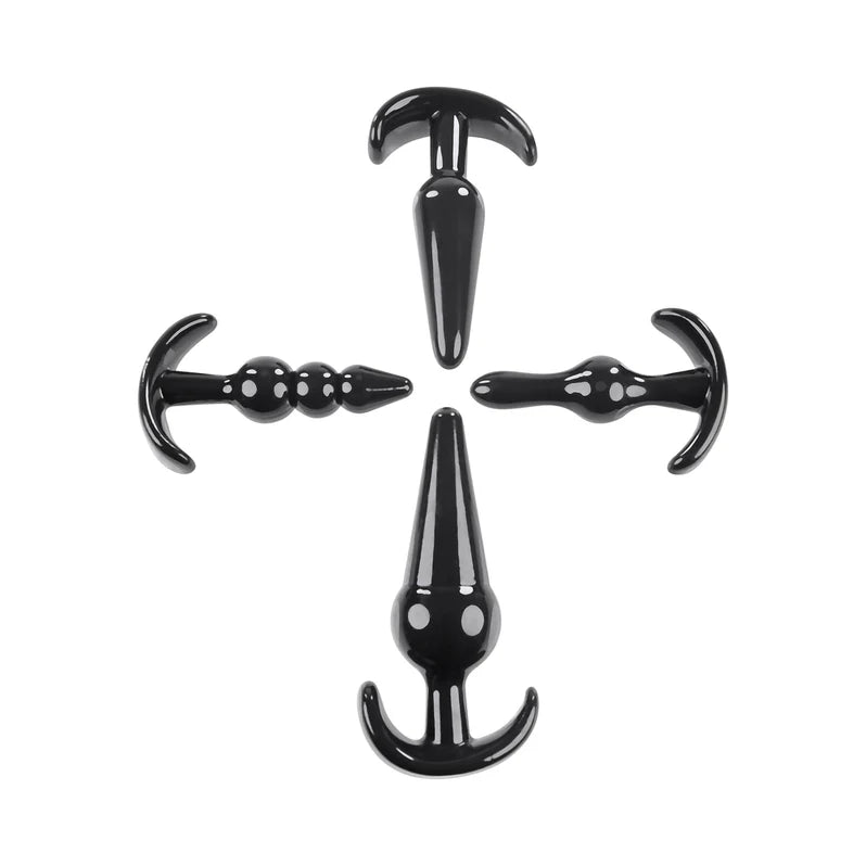 Experience the pleasure of anal play with this versatile set of 4 uniquely designed anal plugs. Each plug offers a different size and sensation, with a tapered tip for easy insertion and a wide base for safe removal.