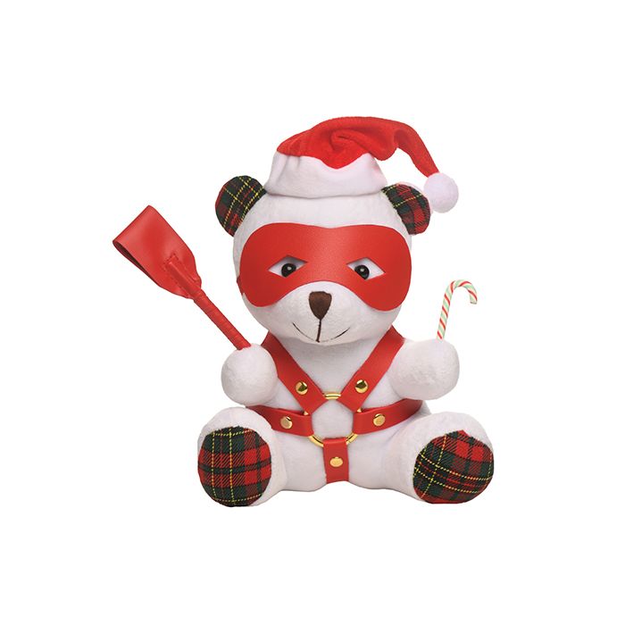 Kink Accessories: This adorable little bear plays a Dominant role with a mask, harness, and a wicked-looking candy cane in one paw and a red riding crop in the other paw as kinky accessories!