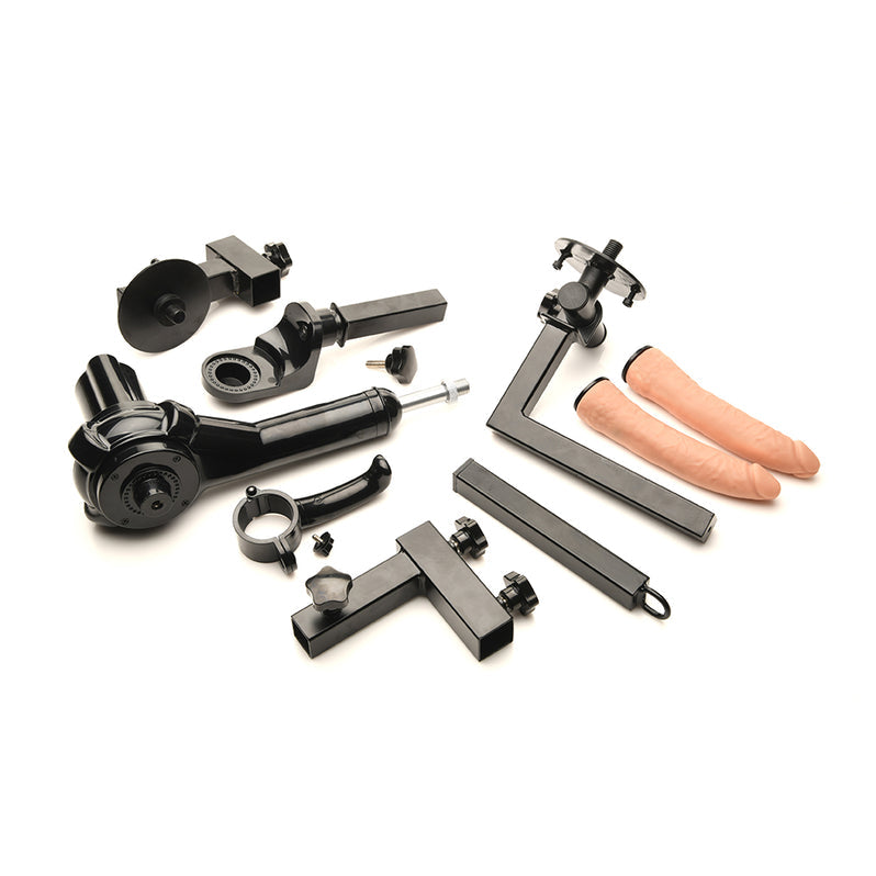 • Multi-Speed Sex Machine: Attach the sex machine to the tower and pound your partner up to 195 times per minute. You can also detach the machine and use it manually.