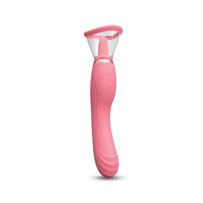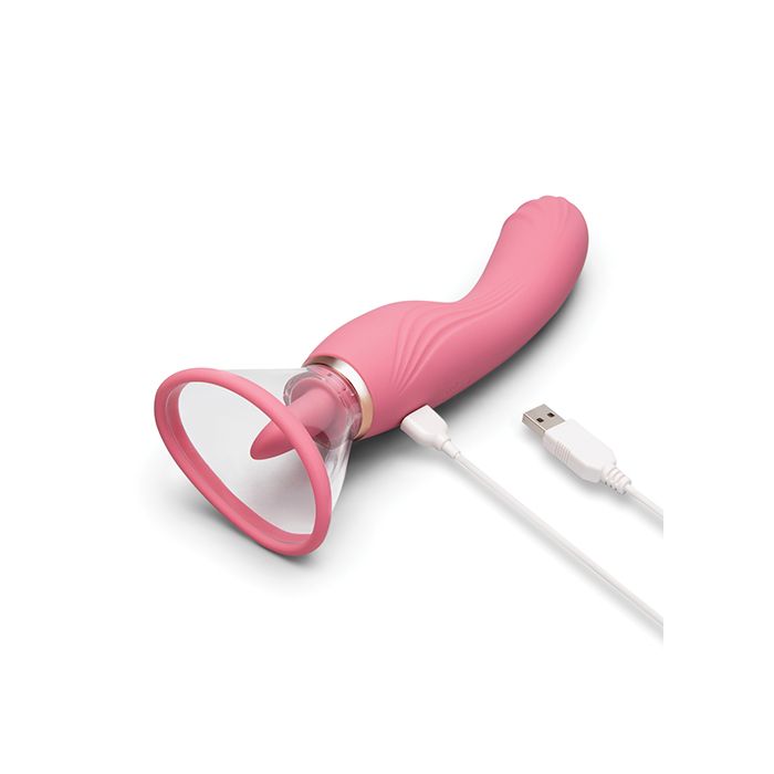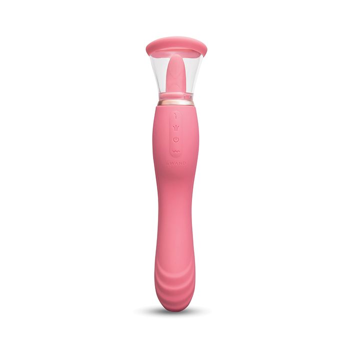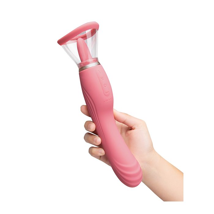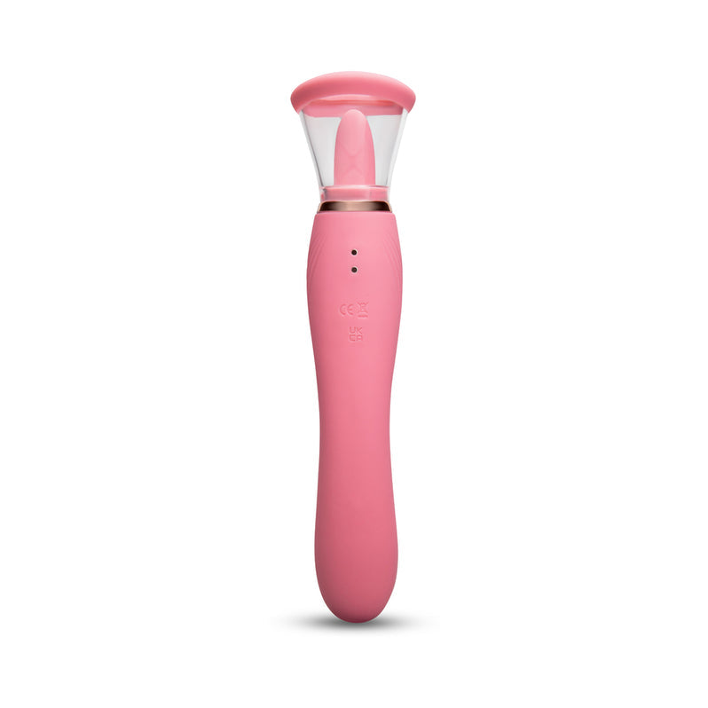 On one end, a soft silicone tongue flicks and pulses with lifelike movements, enhanced by a removable suction cup for intensified clitoral stimulation. On the other, a curved, textured handle doubles as a G-spot vibrator, giving you deep, rumbly vibrations exactly where you want them.