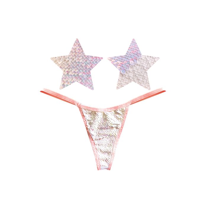 • Color Changing Flip Sequin Lingerie: Instantly transform your look with this playful, shimmering G-string thong and matching Nipztix star-shaped sequin pasties.