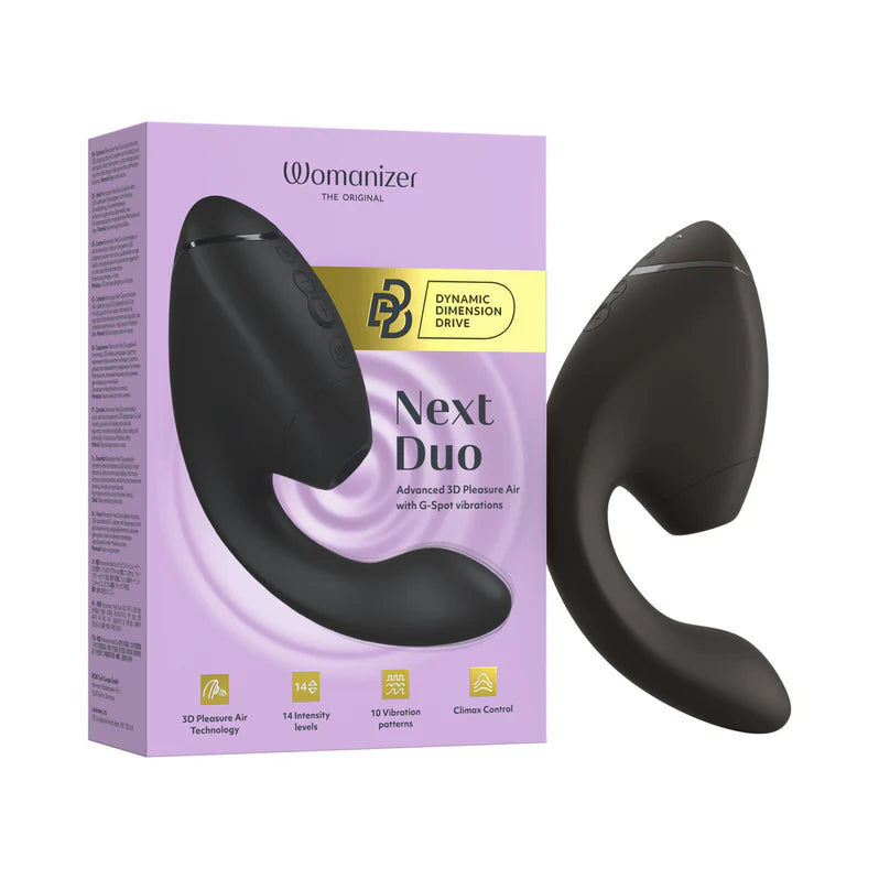 Womanizer Next Duo Clitoral & G-Spot Stimulator — Experience the future of pleasure with the Womanizer Next Duo, an advanced dual stimulator that delivers true blended orgasms. This next-generation toy combines Womanizer’s revolutionary 3D Pleasure Air Technology with deep, rumbly G-spot vibrations from We-Vibe to create sensations that feel completely natural, deeply satisfying, and uniquely personal.