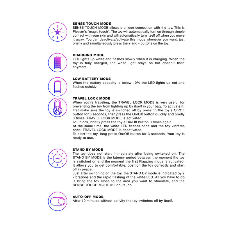 Love to Love makes tech sexy. The Pleaser features the intuitive Sense Touch mode. The sex toy turns on when it touches your skin. It stops when you pull it away. This lets you focus completely on your pleasure without fumbling for buttons.
