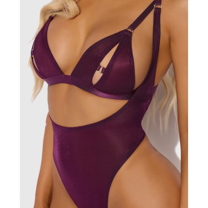 - Triangle bra has a slit front cutout for a naughty peek-a-boo effect.