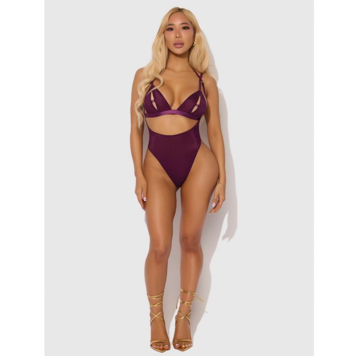 Yasmine Burgundy Shimmer Slit Cup Bralette Set