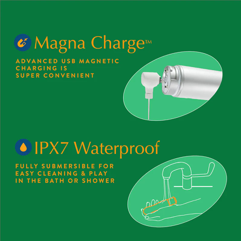 • Fully Submersible IPX7 Waterproof & Magna Charge® Rechargeable