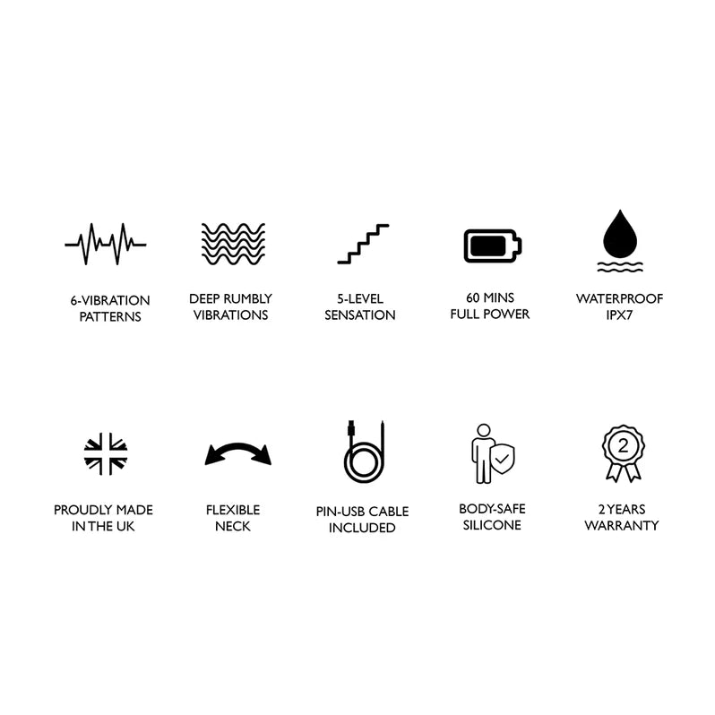 - Fully waterproof (IPX7) so you can take your deepest pleasure into the bath or shower.