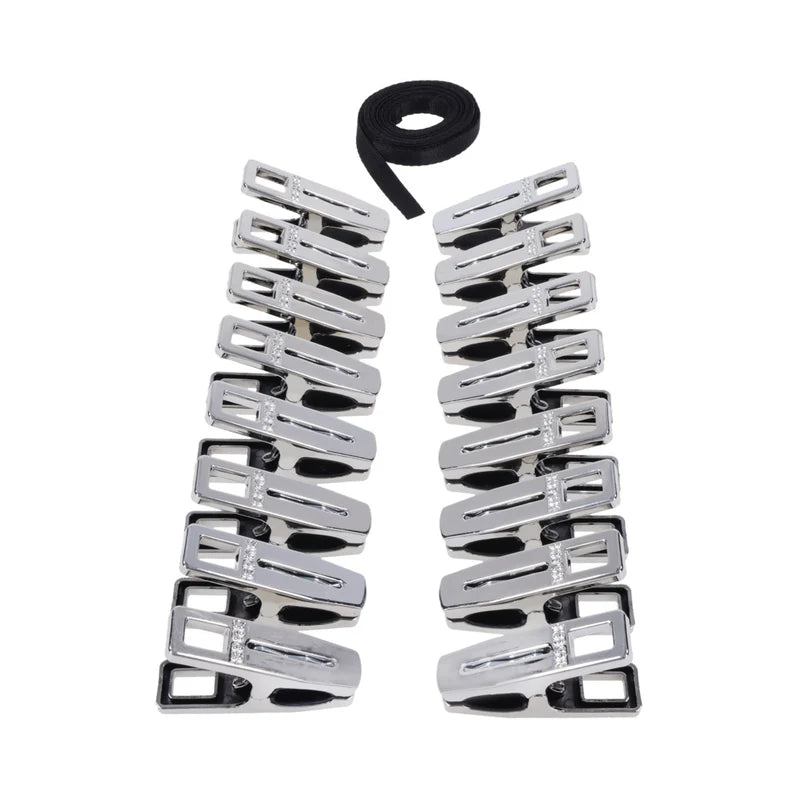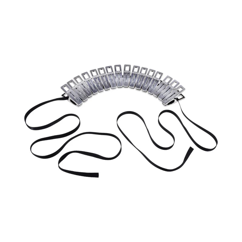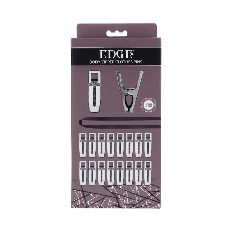 The Edge Body Zipper Clothes Pins by Sportsheets are a premium sensory play kit designed for individuals and couples exploring impact, pressure, and temperature play. This set features 16 silver-plated, silicone-lined clamps and an extra-long 96-inch cord, allowing users to create a "zipper" effect across the body for escalating intensity and controlled release.