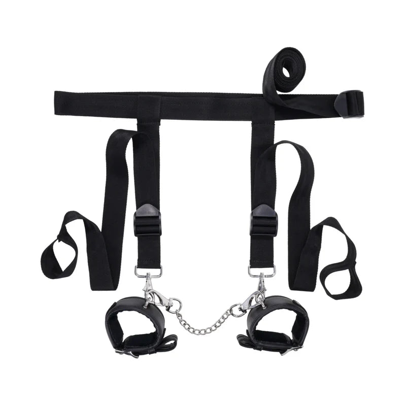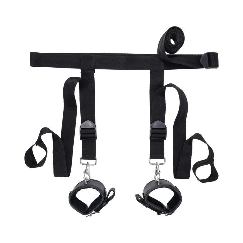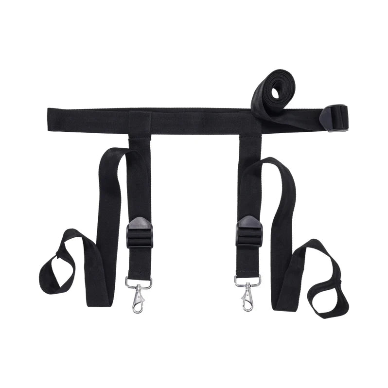 This adjustable door restraint system allows users to transform any standard household door into a secure, multi-point anchor for BDSM and restraint play. It is designed for individuals and couples seeking a sturdy, non-permanent bondage setup that works with existing cuffs and accessories to provide controlled positioning. Cuffs not included.